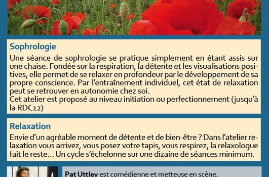 La Sophrologie Une séance de sophrologie se pratique simplement en étant assis sur une chaise. Fondée sur la respiration, la détente et les visualisations positives, elle permet de se relaxer en profondeur par le développement de sa propre conscience. Par l’entraînement individuel, cet état de relaxation peut se retrouver en […]